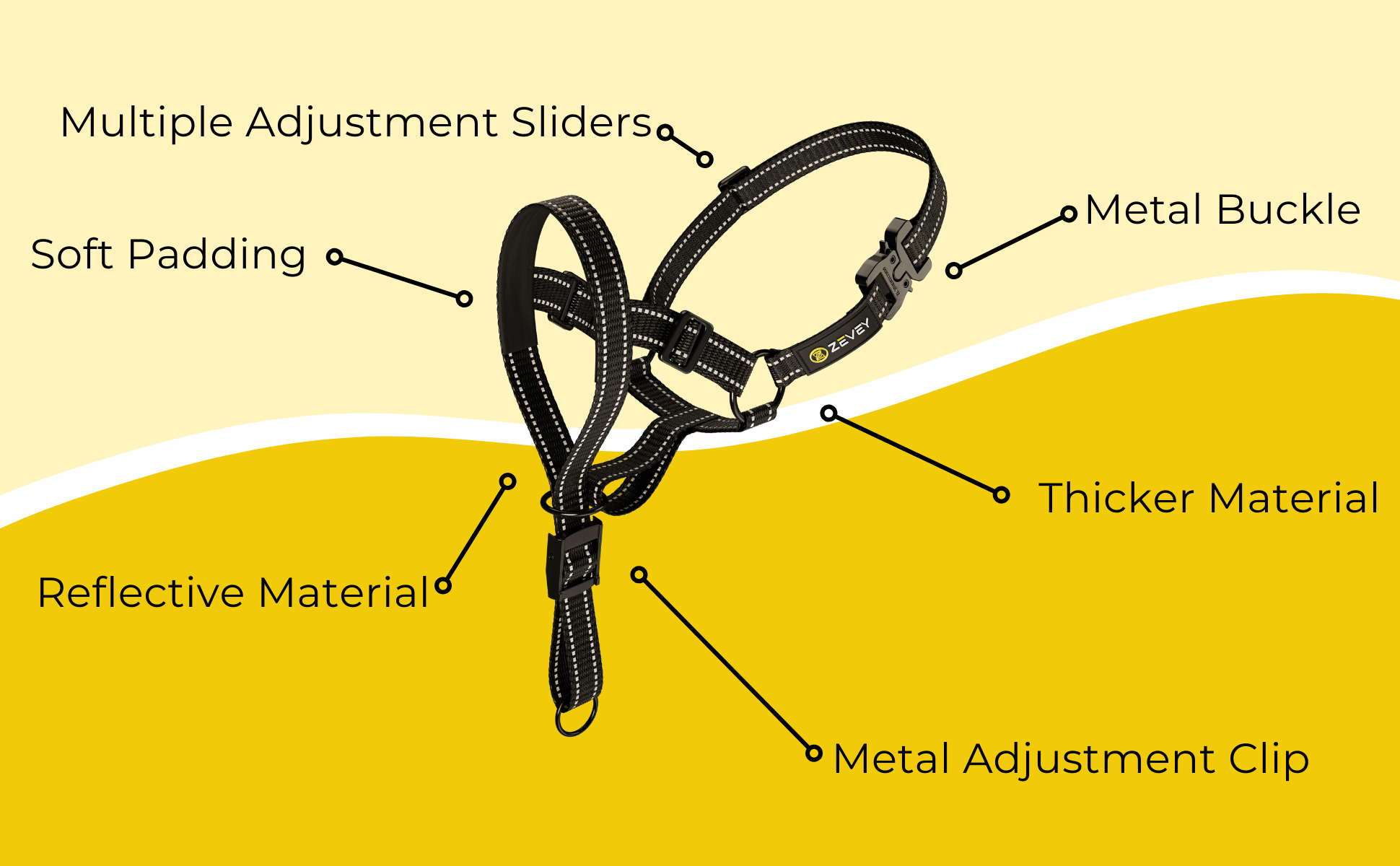 - Satisfaction Guaranteed - Try the Zevey Dog Head Halter Risk-Free. We are confident that you and your dog will love the Zevey Dog Head Collar. However, if for any reason you are not happy with your purchase, we offer a money-back guarantee. Your satisfaction is our priority, and we want you to have a positive experience with our product.